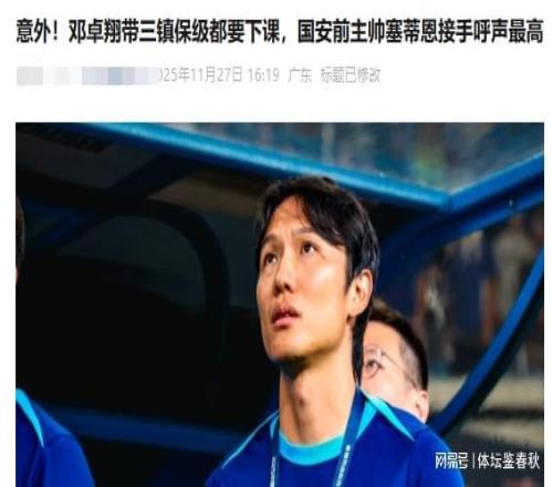 第2个李霄鹏曝邓卓翔带队保级后或下课,前国安主帅或接手三镇