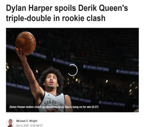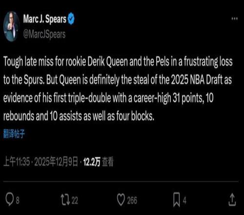 面对奎因这样的表现,名记Marc J. Spears发文精准点评道:“奎因错失绝杀,遗憾不敌马刺,但奎因无疑是25年选秀最大遗珠。”